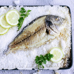 It usually feeds on small crustaceans such as shrimps, hence its subtle and refined flavor. Sea bass is a luxury in the kitchen, Its white and compact meat admits as many preparations as desired: roasted, baked, barbecued, and grilled.